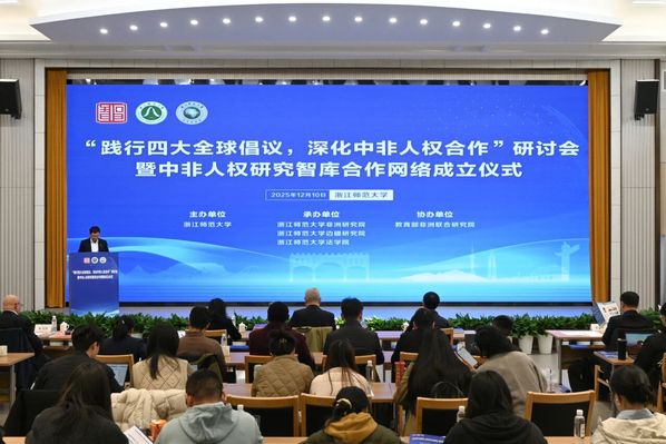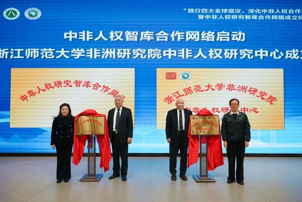 12月10日上午,“践行四大全球倡议,深化中非人权合作”研讨会暨中非人权研究智库合作网络成立仪式在浙江师范大学举行。中国人权研究会副会长沈永祥,浙师大副校长张建珍出席并致辞。