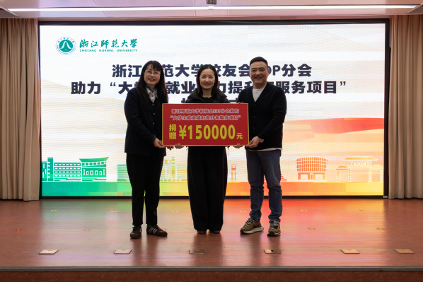 浙江师范大学校友会 EDP 分会助力“大学生就业能力提升和服务项目”捐赠仪式。浙师大融媒体中心 干砚剀 摄