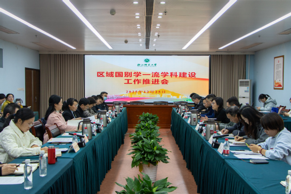 12月25日,浙江师范大学在行政中心多功能会议室举行区域国别学一流学科建设工作推进会,系统总结前期建设成效,并就人才培养、科学研究、学科数字化建设等关键工作进行深入研讨。副校长张建珍主持会议。