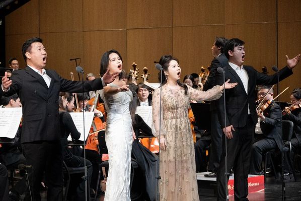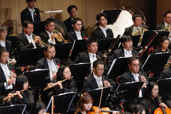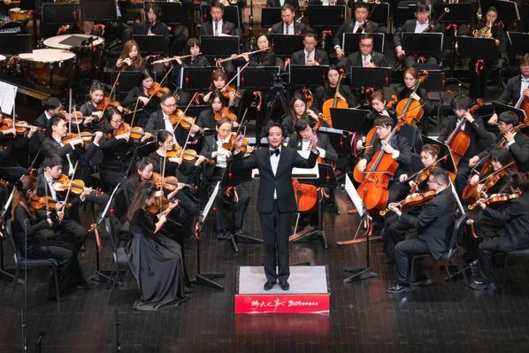 演出在《第一交响序曲》中庄严启幕,激昂的旋律勾勒出峥嵘的画卷,深情地吟咏着赤子衷肠,一代人的山河情怀在音符中缓缓流淌。