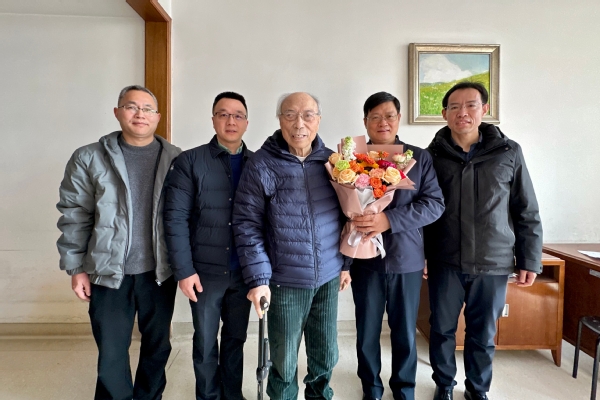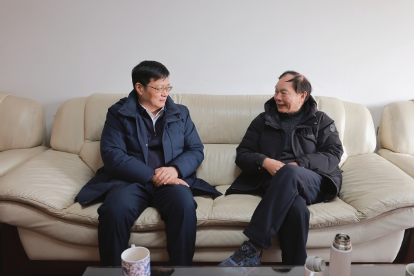 校党委书记蒋云良一行专程赴南京看望物理学家龚昌德院士,向院士致以问候和敬意。慰问交流中,蒋云良关切询问龚昌德院士的生活与身体状况,对院士长期以来为学校作出的贡献表示感谢,并详细介绍了学校及物电学院近年来的整体发展成效,汇报了过去一年学院在人才培养、学科建设等方面取得的成绩。蒋云良表示,物电学院要持续发力,认真梳理、逐条落实院士的指导意见。希望龚院士持续关注学校与学院的发展,多提战略性、前瞻性的宝贵建议。龚昌德院士对浙师大及物电学院取得的成绩给予肯定,并围绕加强党对教育科技事业的全面领导、把握全球科技革命与产业变革趋势,深入探讨了物理学科与生命健康、信息科学、材料科学等领域的交叉融合路径,并就学院学科平台建设、人才队伍梯队培育等方面,提出了一系列具有针对性与指导性的思路建议,为学校高质量发展注入了智慧力量。