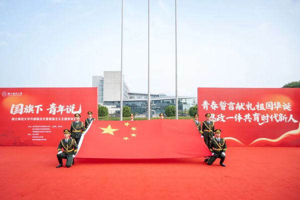 山河远阔,气象维新;国泰民安,风华日进。在中华人民共和国成立76周年之日,浙师人与五星红旗庄严相伴,共同见证伟大祖国的繁荣发展。当日早晨七时许,300余人共聚崇师广场,听嘹亮歌声久久回荡,看鲜艳红旗冉冉升起。浙江师范大学“国旗下 青年说”升国旗仪式暨爱国主义主题教育活动举行。浙师大党委书记蒋云良,党委委员、宣传部部长葛永海出席活动。