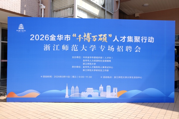 3月11日上午,由金华市委组织部(人才办)、金华市人力资源和社会保障局、浙江师范大学共同主办,浙江师范大学研究生工作部、金华市人才服务和人事考试中心联合承办的2026金华市“千博万硕”人才集聚行动浙江师范大学专场招聘会在大学生活动中心举办。现场齐聚高校、事业单位、国企、银行及重点企业共53家,集中提供1500多个高层次优质岗位。活动吸引2100余人次学生到场,现场用人单位收到1500余份简历,近500人达成初步就业意向。浙师大党委副书记吕迎春,金华市人社局局长马越出席推介宣讲会。