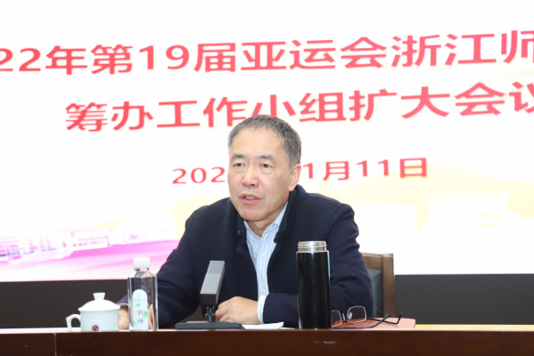 11月11日,杭州亚运会浙江师范大学筹办工作领导小组扩大会议举行。浙师大党委书记蒋国俊出席会议并讲话,校长郑孟状主持会议,副校长李伟健作工作汇报。浙师大党政领导班子成员出席会议。
