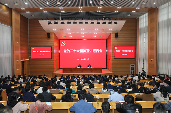 为进一步推动党的二十大精神在学校宣传更广、研究更深、贯彻更好,学校党委决定举办“学习贯彻党的二十大精神”专题读书班,今天的宣讲会也是读书班的开班仪式。读书班还安排了个人自学、专家报告、分组讨论交流等内容。