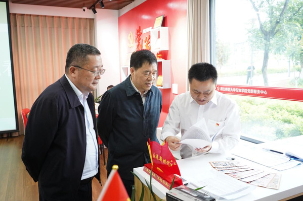 在行知学院党群服务中心主题教育活动展区,巡回指导组认真听取了行知学院在理论学习、调查研究、推动发展、检视整改、建章立制等方面的开展情况,肯定了利用党群服务中心平台开展“红色小剧场”“书记有约”“心愿墙”等活动。巡回指导组还就行知学院全国党建工作样板支部和全省党建工作标杆院系示范引领作用的发挥,党建联建典型案例与访企拓岗及服务就业相关内容进行了深入了解。巡回指导组参观了党史文化长廊,认为党史文化长廊充分利用了教学楼架空层等公共空间,融合党建红色元素,充分发挥了环境文化育人的功能,积极营造了学习贯彻习近平新时代中国特色社会主义思想主题教育的学习氛围。