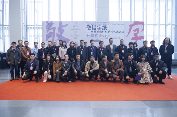 3月15日下午,由浙江师范大学主办的国家艺术基金2025年度传播交流推广资助项目“敬惜字纸——当代观念性纸艺术作品巡展”在安徽省美术馆举行开幕仪式。原北京电影学院副校长、中国工艺美术学会纤维艺术与设计专业委员会主任尼跃红,本项目学术顾问、浙江师范大学副校长朱毅峰,安徽省美术馆馆长王岭,本项目统筹、浙江师范大学设计与创意学院院长郑军德,中国国家画院研究员、创研规划处副处长康雷,本项目负责人、浙江师范大学“双龙学者”特聘教授王雷,中国美协综合材料绘画艺委会委员、安徽省美术家协会副主席吴晓明,安徽大学艺术学院副院长刘立冬,浙江省文化馆视觉艺术部主任、中国雕塑学会理事陈政,合肥市美协常务副主席汪三林,合肥文学艺术策展中心主任顾辉,浙江师范大学教授徐华颖,浙江师范大学教授赵红华,安徽艺术学院绘画系副主任刘庆,宁波大学潘天寿艺术学院教师焦彩虹,浙江师范大学设计学院教师骆晓,浙江师范大学设计学院教师章国新应邀出席。出席本次开幕式的还有参展艺术家代表杨中伟、韩行、魏旭超、张旭、金俊、林智伟、王广瑞、张剑平、马震、张秋实、郑格菲、汪晟以及来自全国各地的艺术家、艺术爱好者共一百余人。