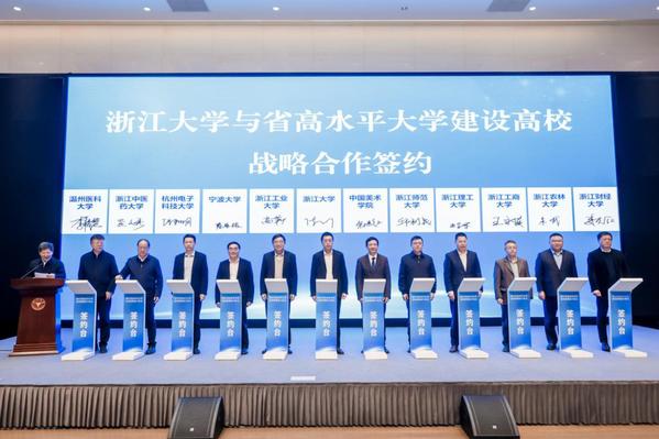 仪式上,浙江大学与省高水平大学建设高校签署“1+1”战略合作协议,浙江师范大学校长邱利民代表学校签署协议。