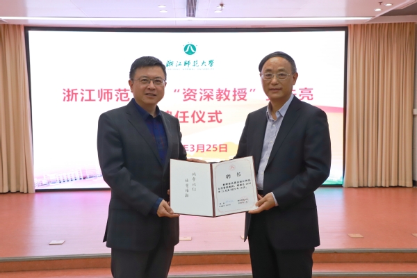 浙师大校长邱利民为张先亮教授颁发聘书。浙师大融媒体中心 周灵 摄