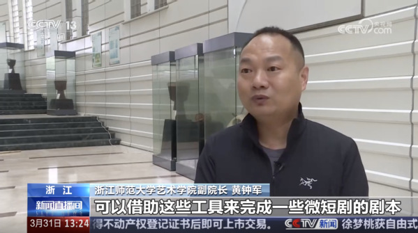3月31日,浙江师范大学艺术学院副院长黄钟军教授接受央视《新闻直播间》栏目采访,就当前“微短剧+”相关问题进行评论。