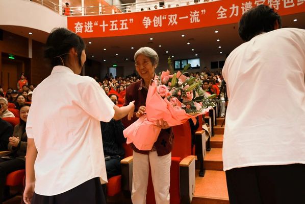 话剧开演前,吕迎春深情致辞。她指出,《随风飞扬》的上演既是一场艺术盛宴,更是一次对蒋风先生的精神溯源——蒋风先生深耕儿童文学沃土,以毕生坚守铸就精神丰碑,用一生践行了“为党育人、为国育才”的浙师初心。希望这部以戏剧艺术演绎的教育家精神赞歌成为一缕永恒的春风,连接历史,奔赴未来,激励新时代浙师人赓续文脉,让浙师精神在新时代“随风飞扬”。