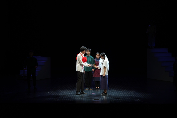 演出温情启幕,话剧主演吴润韬、杨卓涵向深耕儿童文学领域的蒋风先生与卢德芳女士献花,致敬二人治学匠心与育人情怀。