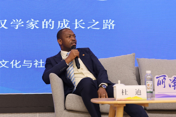 聘任仪式后,第六十二期丽泽故事汇开讲。杜迪以“跨越山海的中文追梦路”为题,分享了他与中文、与浙师大的不解情缘和成长历程。他回顾了自己从2008年选择喀麦隆少有人问津的中文专业,到赴浙江师范大学攻读硕士,后作为首批“新汉学计划”博士奖学金获得者继续深造的求学经历,并讲述了初到中国时面临的语言困难,以及“每天早晨8点走进图书馆,深夜10点闭馆才离开”的奋斗故事。作为喀麦隆首位本土中文教师,杜迪长期深耕非洲中文教育本土化实践:他主编的《你好,喀麦隆》成为喀麦隆教育部唯一指定的中学中文教材,影响力辐射整个非洲中文教育;主导翻译并修订了喀麦隆中学中文课程大纲,建立了分级教学目标,推动中文教育纳入当地国民教育体系。2020年,杜迪获得中华图书特殊贡献奖,成为非洲首位、也是目前唯一获此殊荣的学者。2025年,杜迪作为全球61位青年汉学家代表之一致信习近平主席,并在世界中文大会开幕式上发言,多次深情致谢母校浙江师范大学。杜迪表示,国际中文教育的核心在于本土化,应立足当地文化背景,打造贴合学生的教学方法、教材与课程体系。