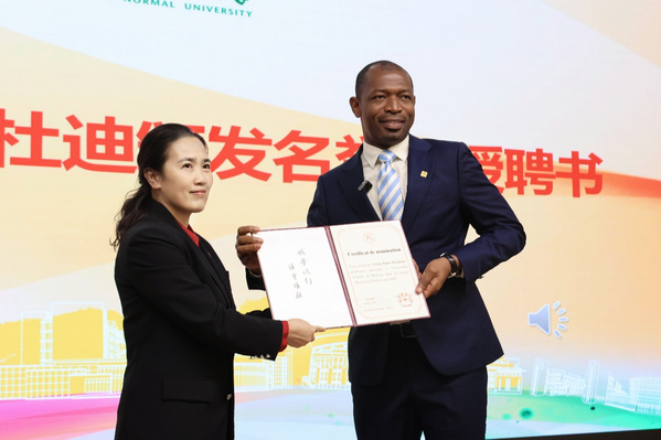4月16日,浙江师范大学举行杜迪博士名誉教授聘任仪式暨第六十二期丽泽故事汇、校友北山论坛第五季活动。喀麦隆首位本土中文教师、非洲首位中华图书特殊贡献奖获得者、浙师大优秀校友杜迪博士应邀返校,受聘为母校名誉教授并分享成长故事。校党委副书记吕迎春出席活动。