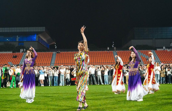 在草坪舞台上,校艺术团带来的《一起来跳舞吧》等节目引发大众热情参与,台上台下融为一体,将现场氛围推向高潮。