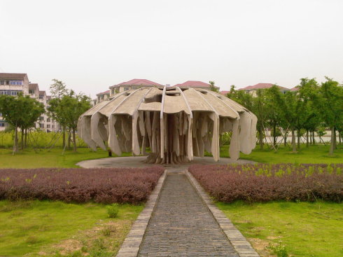 Spread out along a couple kilometers of riverside park space are around two dozen displays of structures designed by architects both Chinese and international. Showcasing a variety of building materials and a bewildering array of creative vision, the structures add an abstract modern flair to the landscape of downtown Jinhua. Visitors can walk along well-maintained walking paths through the park and admire the design. Unfortunately, the structures are not particularly well maintained or supervised, and some are drifting towards disrepair. This should not deter visitors, however, as the park is a very pleasant place to stroll.